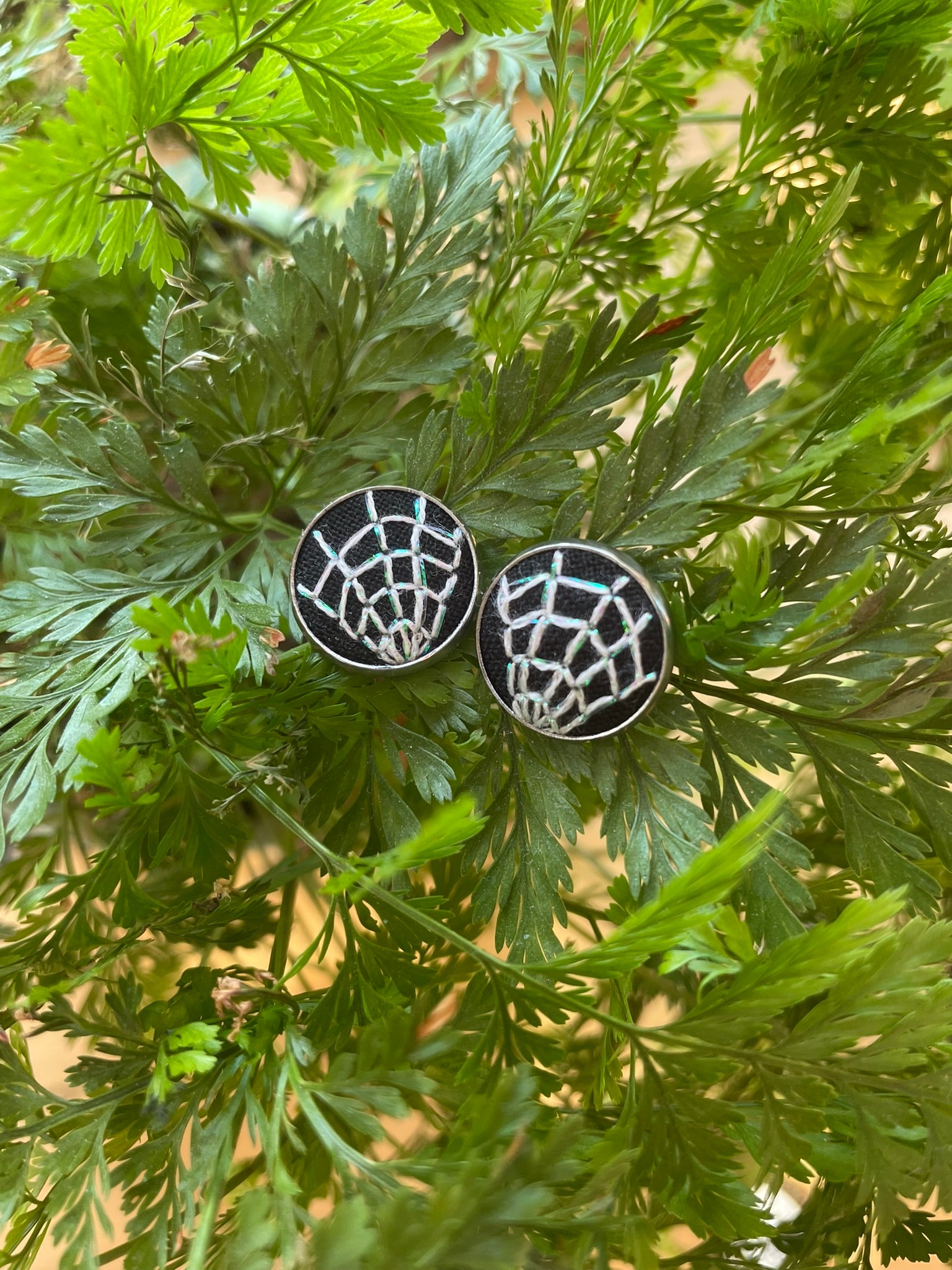Hand Embroidered Iridescent Spider Web Stud Earrings – Stainless Steel
